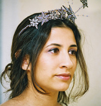 All tiaras and hair jewels can be crafted into intricate designs or single shapes. They come in a selection of Swarovski crystals and gorgeous bold and soft metallic glitter colours. To see the full colour chart, please ask about the Bespoke Millinery colour palette. Alternatively, if you are in search of something smaller and discreet, Virginie can also create individual hair jewels set either on a comb, hairclip or hairpins.